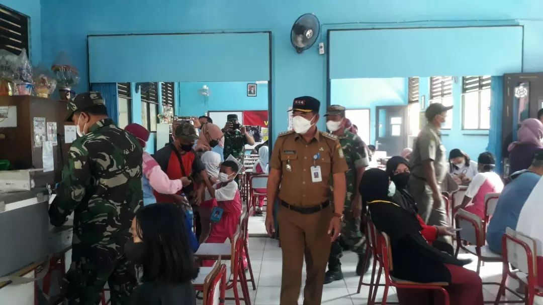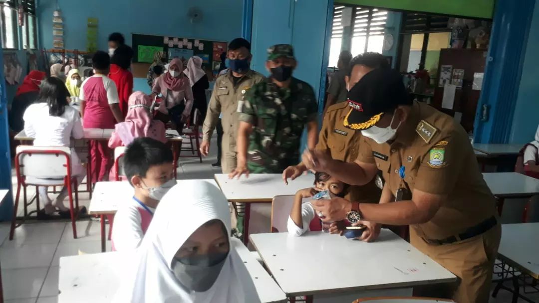 Camat Larangan Kunjungi Gerai Vaksin Merdeka Usia 6+ Di SDN Larangan Selatan