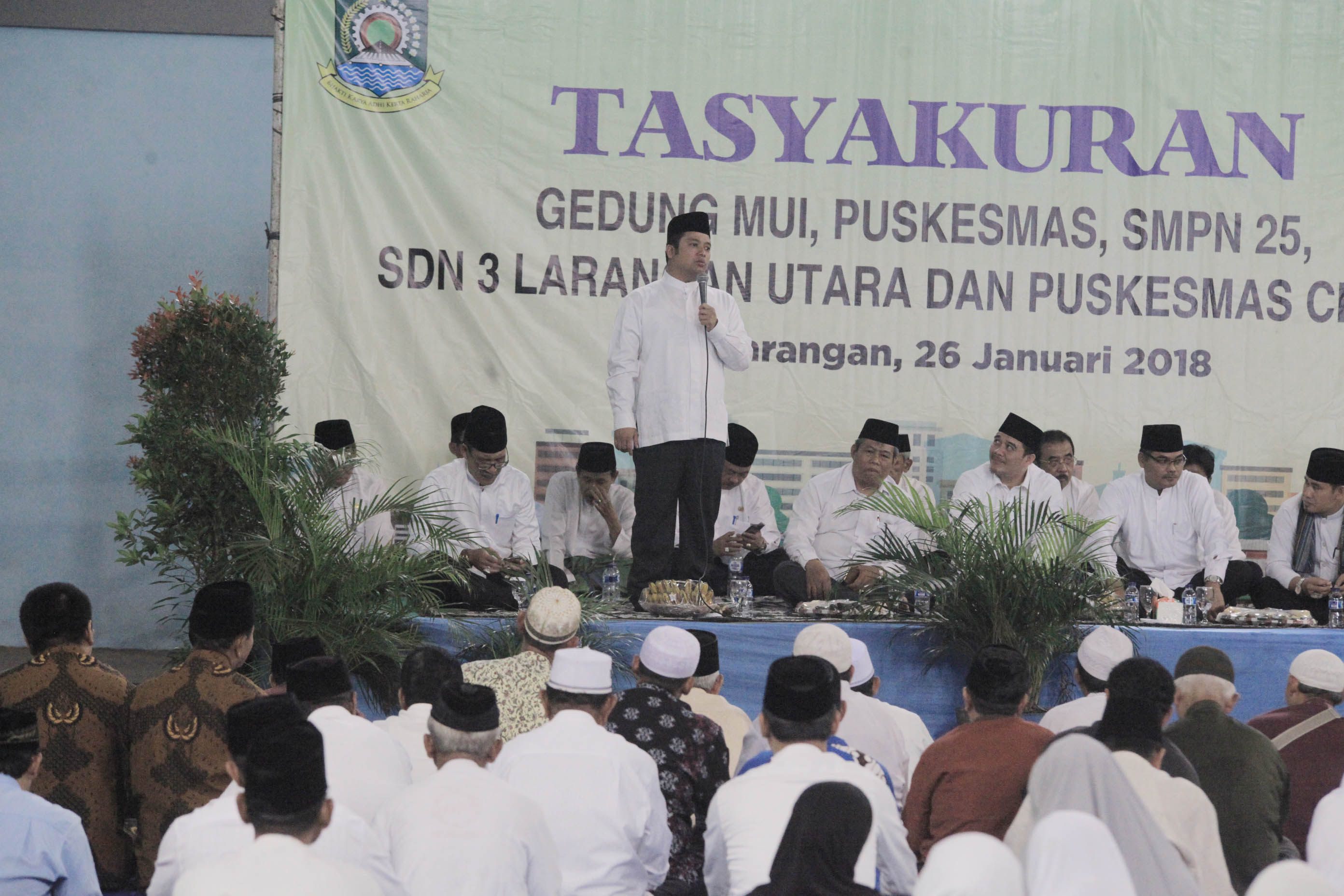Wali Kota Tangerang, H. Arief R. Wismansyah, didampingi sejumlah kepala Organisasi Perangkat Daerah (OPD) di lingkup Pemerintah Kota Tangerang meresmikan Gedung MUI dalam rangkaian acara Tasyakuran Penempatan Gedung Baru/Pemanfaatan Hasil Pembangunan Tahun Anggaran 2017 di wilayah Kecamatan Larangan.