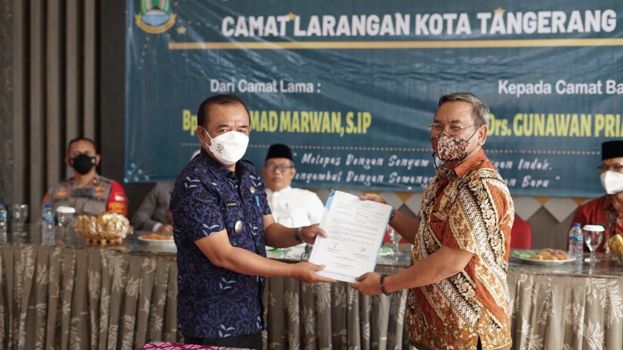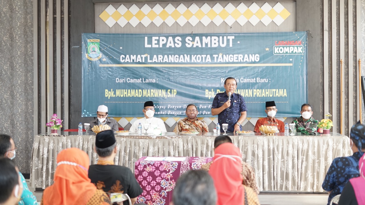 Larangan - Kecamatan Larangan Kota Tangerang menggelar kegiatan Serah Terima Jabatan (Sertijab) dan lepas sambut Camat Larangan di aula Kantor Kecamatan Larangan, Kamis (10/3).