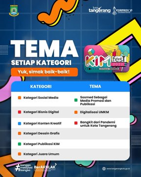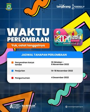 Halo warga Kota Tangerang kalian semua harus tahu kalau KIM Festival Kota Tangerang 2022 hadir kembali!!! Ikuti beragam lomba dalam rangkaian kegiatan #KIMFEST2022